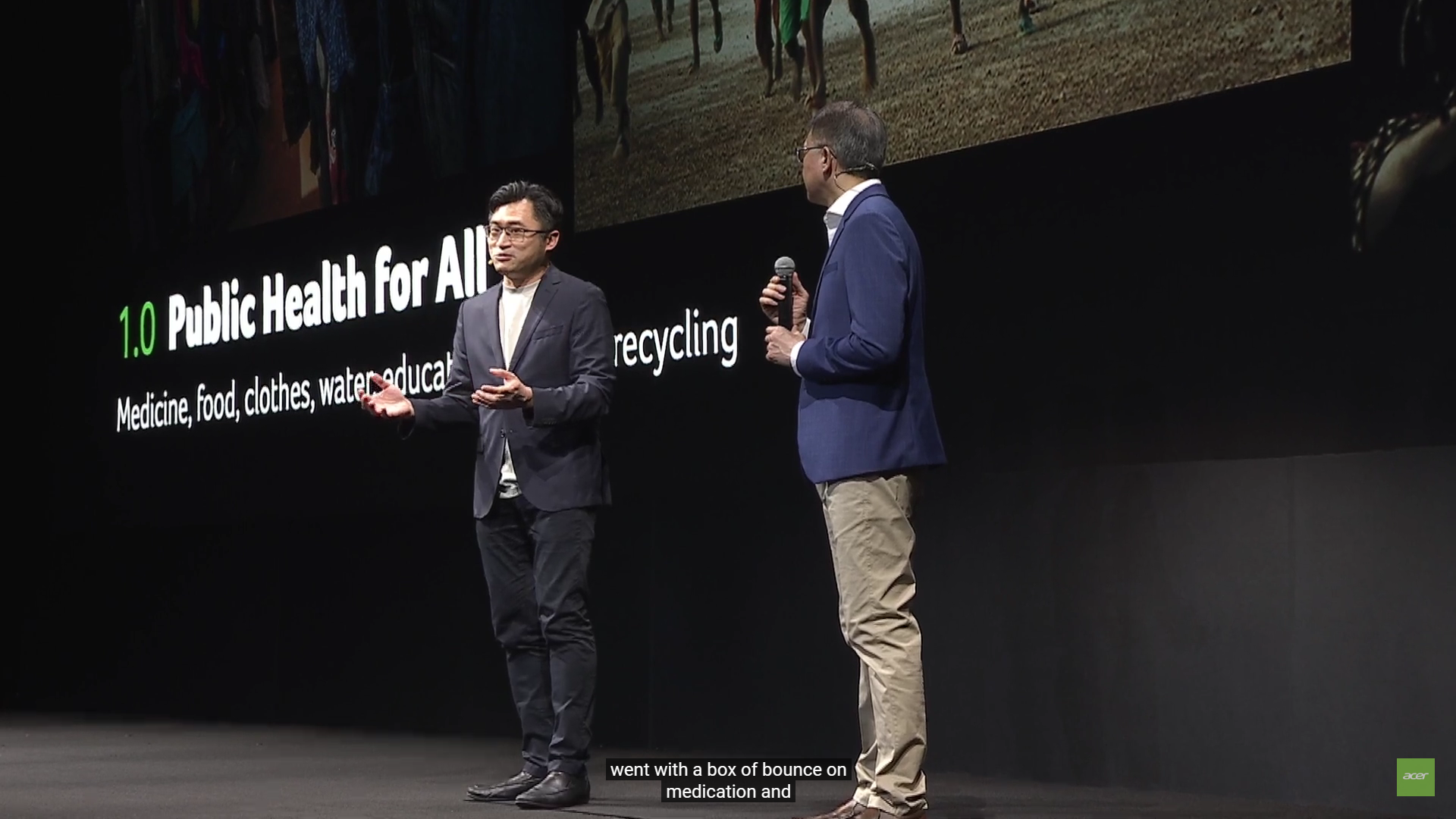 Selain berfokus pada keberlanjutan lingkungan, Acer juga sangat memperhatikan kesehatan masyarakat. Acer telah melakukan banyak donasi di bidang kesehatan. Menurut Acer, sebelum memperhatikan keberlanjutan produk, yang lebih penting adalah keberlanjutan kesehatan.