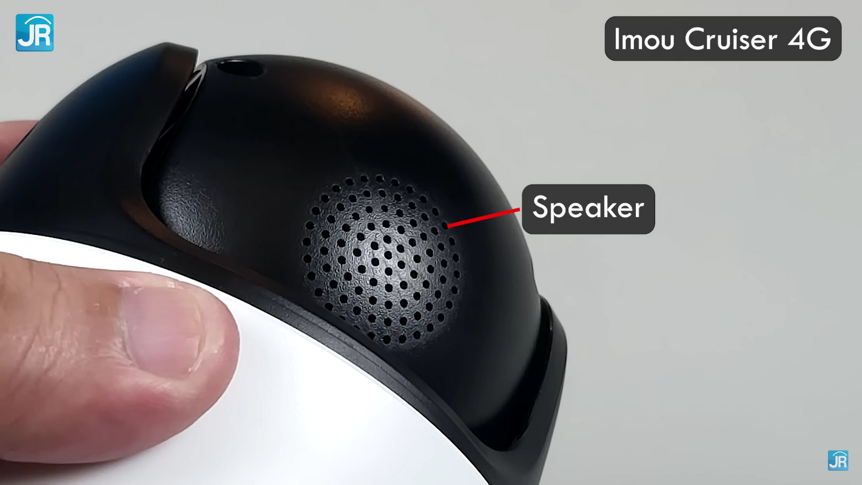 Tulisan “Imou” di sini bukan terbalik. Kamera ini memang seharusnya dipasang dengan orientasi seperti ini. Di bagian depan atau muka dari kamera ini, terdapat lensa kamera, spotlight, infra red, lampu indikator, serta mic. Sementara, di atas area itu ada speaker.
