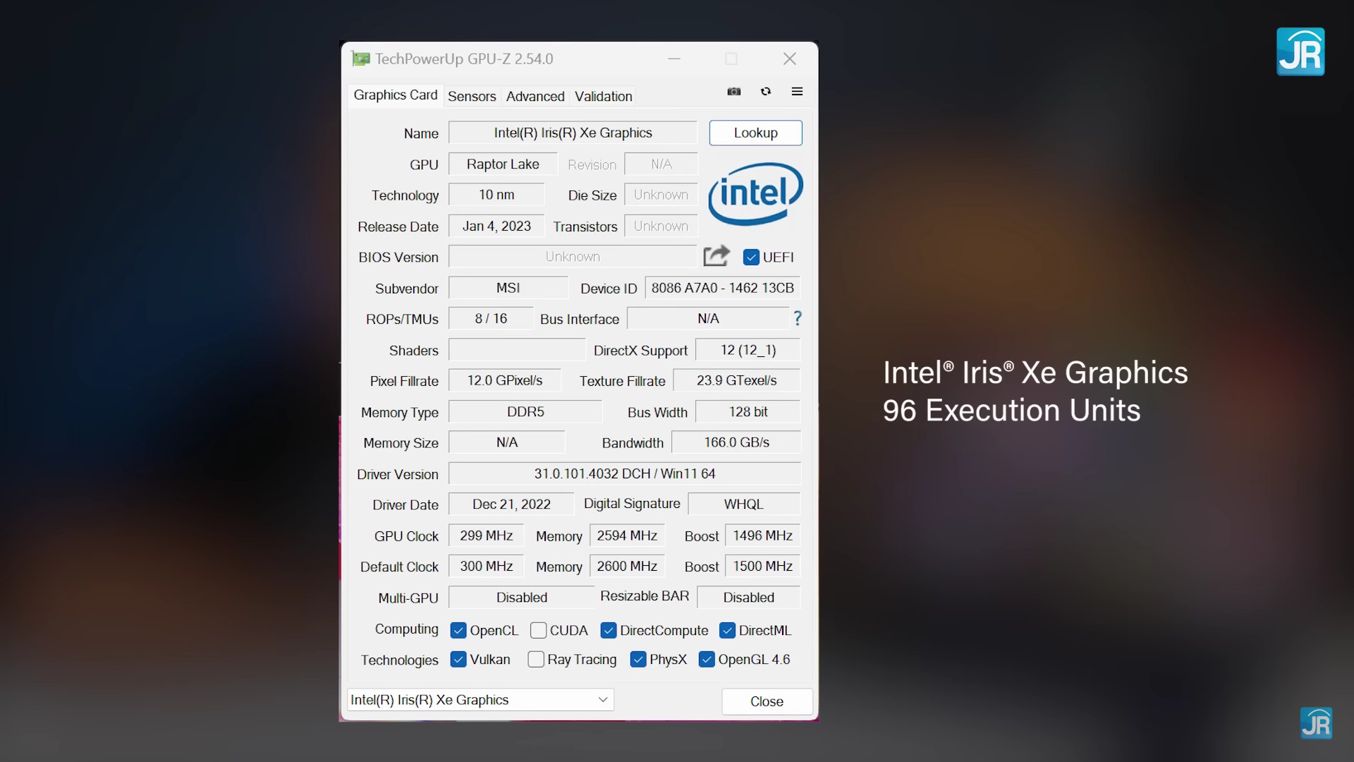 - Integrated Graphics dengan Intel Iris Xe Graphics yang terdiri dari 96 Execution Units.