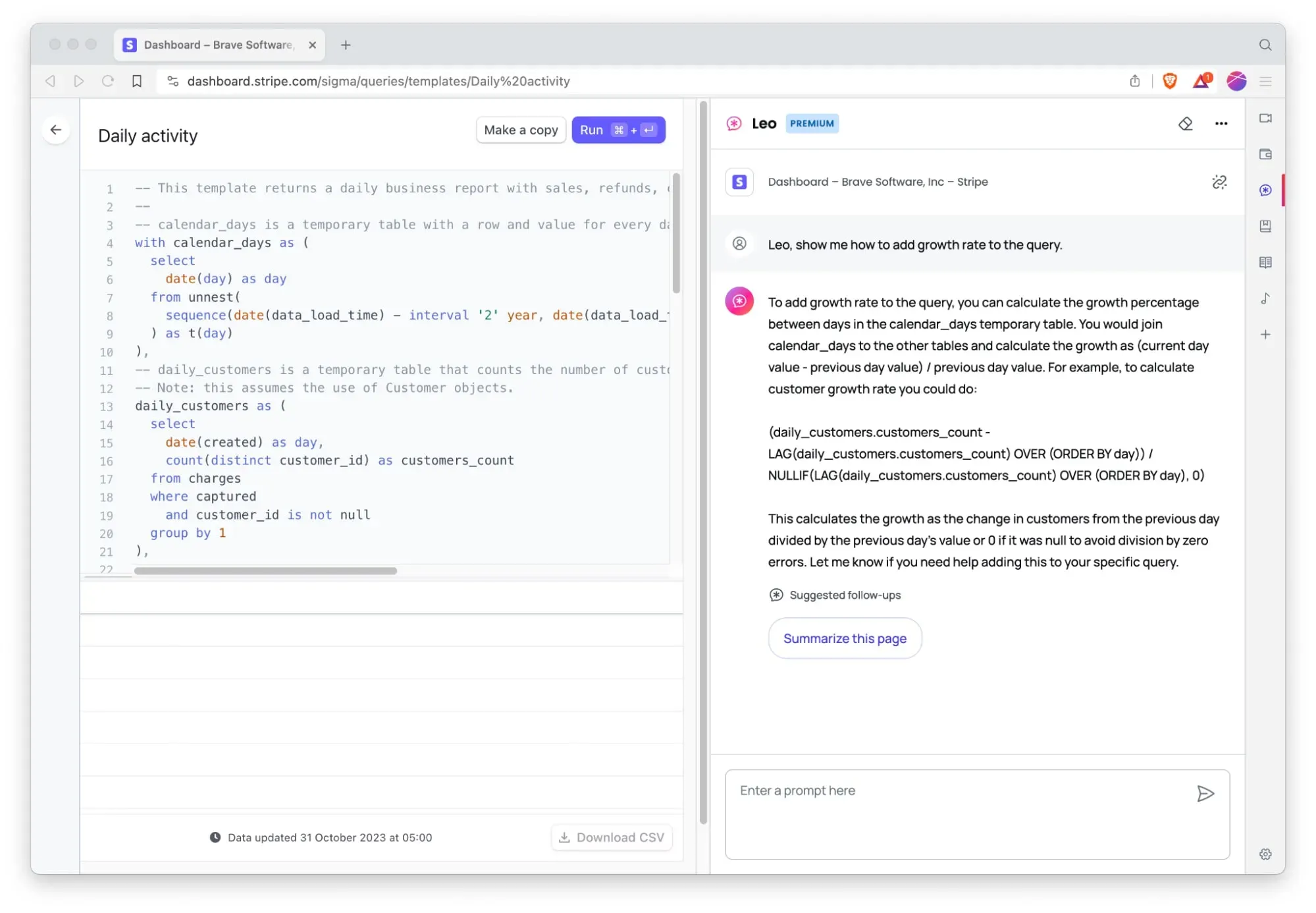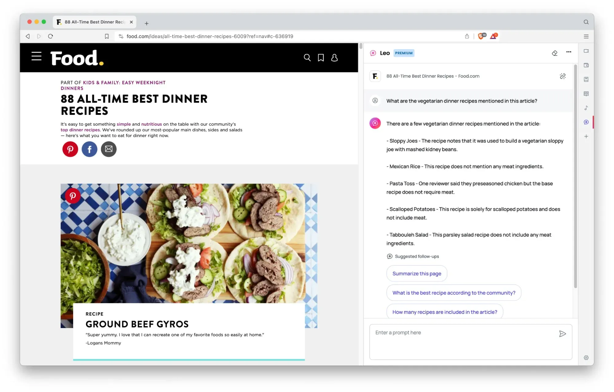 Chatbot Leo ini dirancang untuk membuat ringkasan halaman web secara real-time. Leo akan menjawab setiap pertanyaan yang diberikan padanya. AI ini dapat membantu pengguna memecahkan berbagai macam hal dengan lebih cepat di dalam sebuah browser.