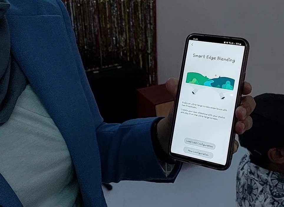 - Setelah terhubung, pilih opsi Smart Edge Blending yang ada di opsi proyektor yang pertama terhubung, lalu pilih configuration. Perangkat kedua akan muncul di menu ini, lalu pilih perangkat tersebut.