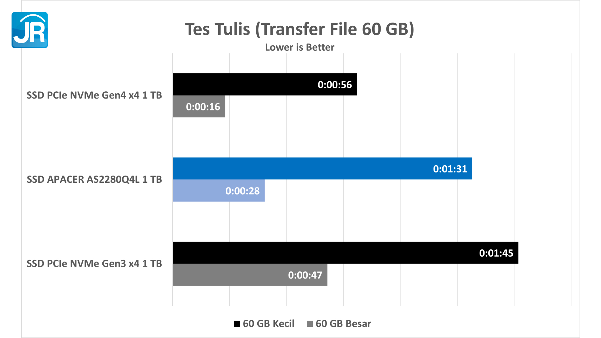 Memang kecepatan dari SSD ini termasuk pelan untuk sebuah M.2 PCIe Gen4. Meskipun begitu, kecepatannya ini masih jauh lebih kencang jika dibandingkan dengan harddisk, maupun sebuah SSD SATA sekalipun. Ketika dicoba adu dengan sebuah SSD Gen3 pun, Apacer AS2280Q4L ini masih unggul. Jadi ini masih kencang sebetulnya. Opsi penyimpanannya pun juga besar, yaitu hingga 2 TB dan tentunya harganya juga terjangkau.