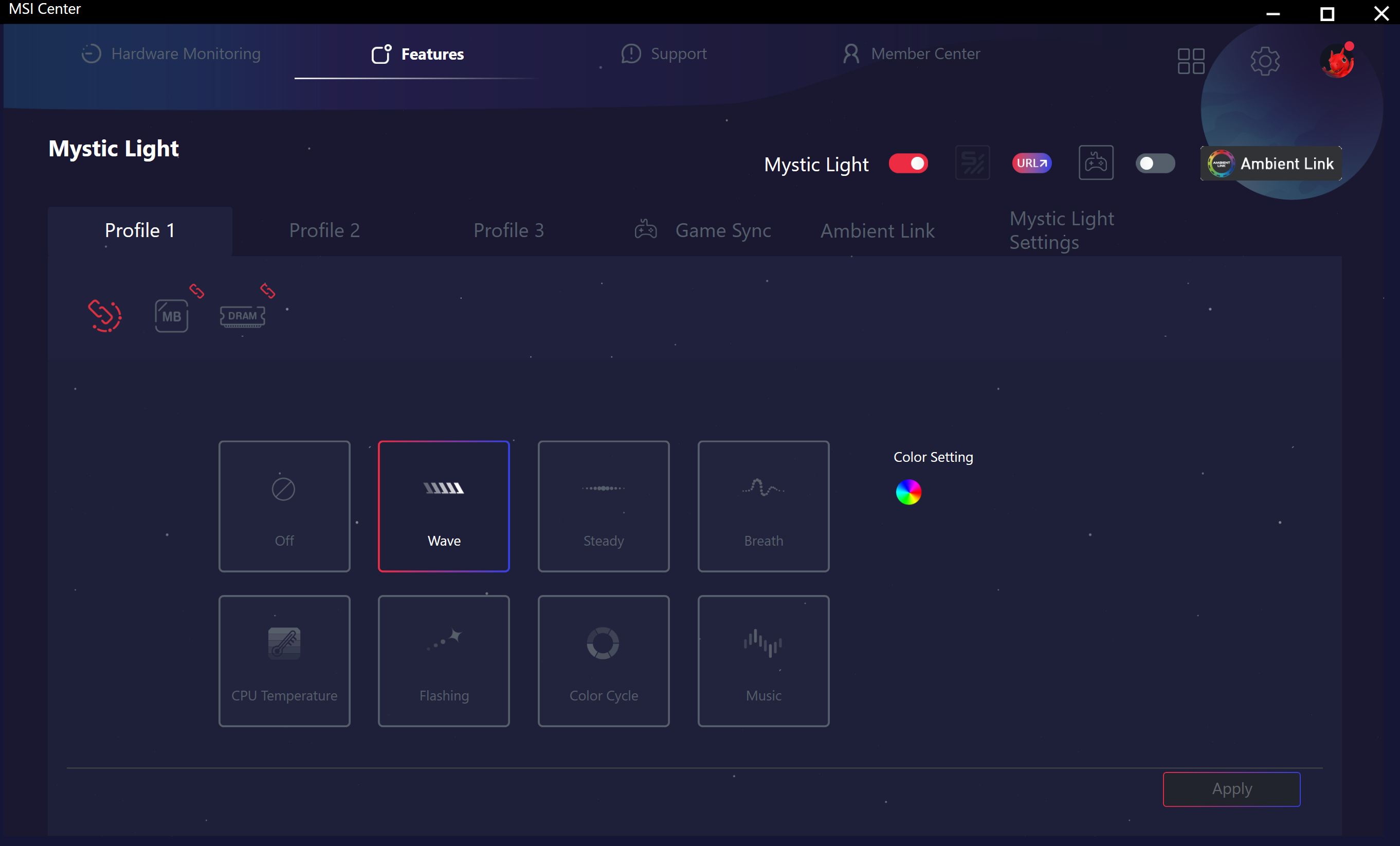 Untuk perangkat lama atau sistem RGB pihak ketiga, Mystic Light masih jadi opsi yang lebih stabil dengan dukungan fitur seperti Ambient Link dan Voicemod. Bagi kalian pengguna PC dengan sistem MSI, bisa lihat cara pengoprasiannya secara lengkap di situs MSI.