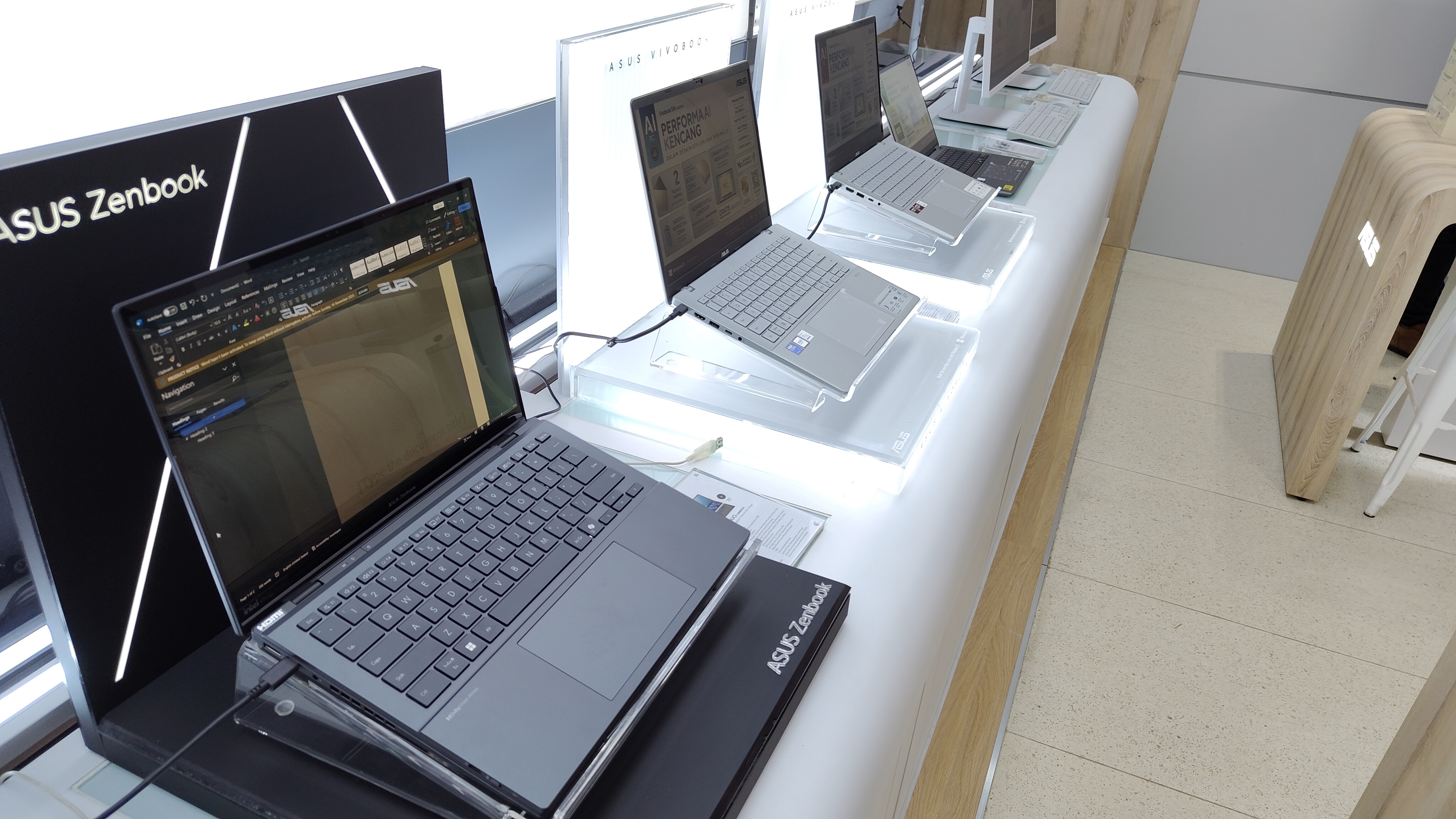 Sementara itu, di area lain, ASUS menghadirkan lini laptop Zenbook yang menonjolkan desain elegan, ringan, dan performa tinggi untuk kebutuhan kerja maupun kreasi. Ada juga seri Vivobook yang lebih terjangkau, cocok untuk pelajar dan pengguna muda yang dinamis. Tak ketinggalan, lini All-in-One PC juga tersedia bagi pengguna yang mencari solusi ringkas untuk kebutuhan rumah atau kantor dan semuanya bisa langsung dicoba di tempat.