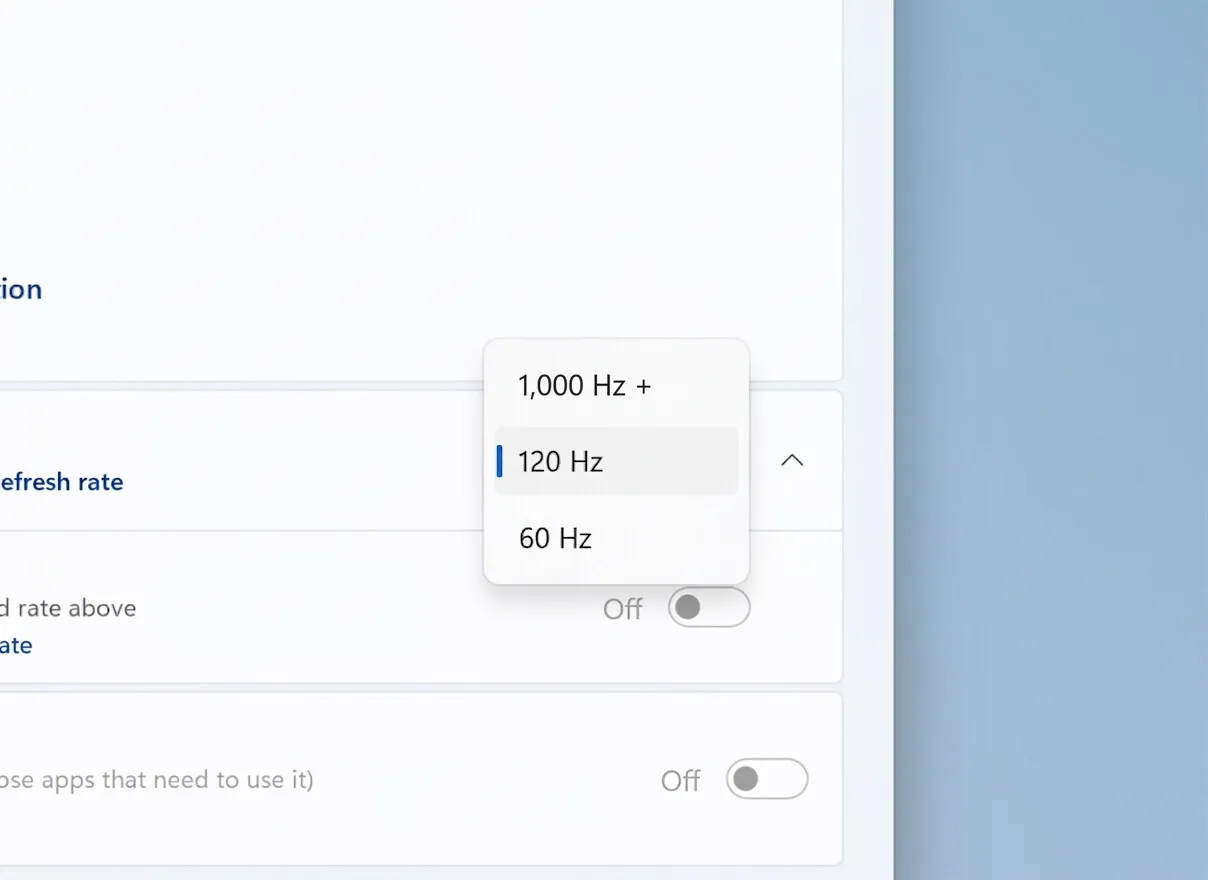 Sebagai contoh, monitor tertentu dapat beroperasi pada resolusi 4K dengan refresh rate 240Hz. Namun jika dibutuhkan kecepatan maksimal, layar tersebut bisa beralih ke resolusi lebih rendah seperti 720p dengan refresh rate hingga 1000Hz. Dengan dukungan baru ini, Windows dapat menampilkan angka refresh rate tersebut secara akurat di pengaturan layar.